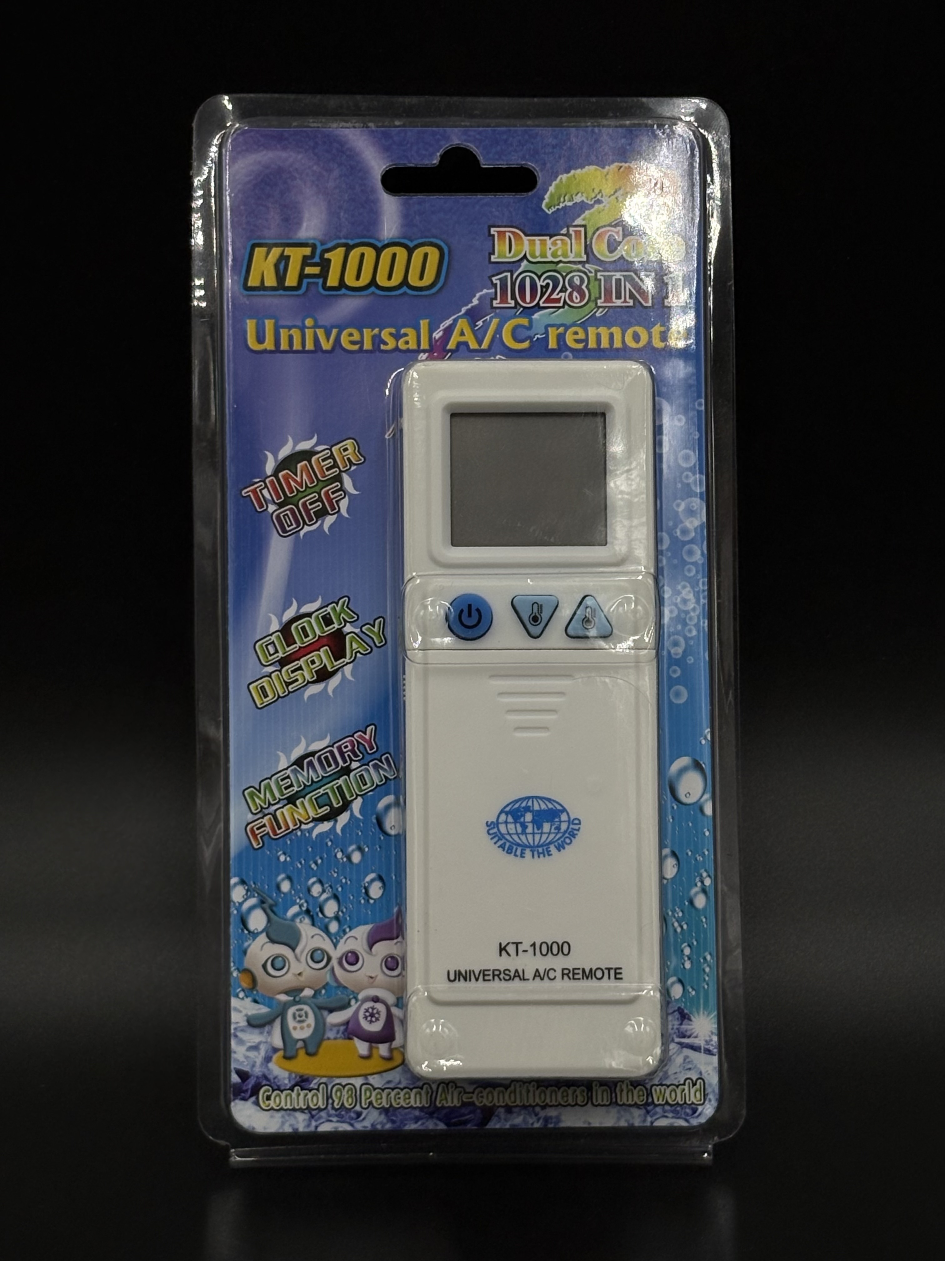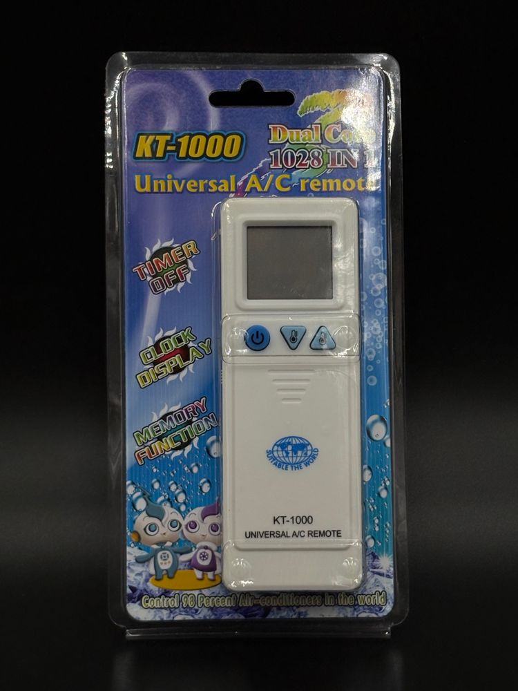 Пульт KT-1000 - универсальный пульт для кондиционеров, который поддерживает 1000 моделей кондиционеров более чем 70-ти известных брендов. Настроить пульт на работу с Вашим кондиционером, можно выбрав модель кондиционера из базы пульта с помощью таблицы кодов, или автопоиском, если "родной" пульт Вашего кондиционера неизвестен.